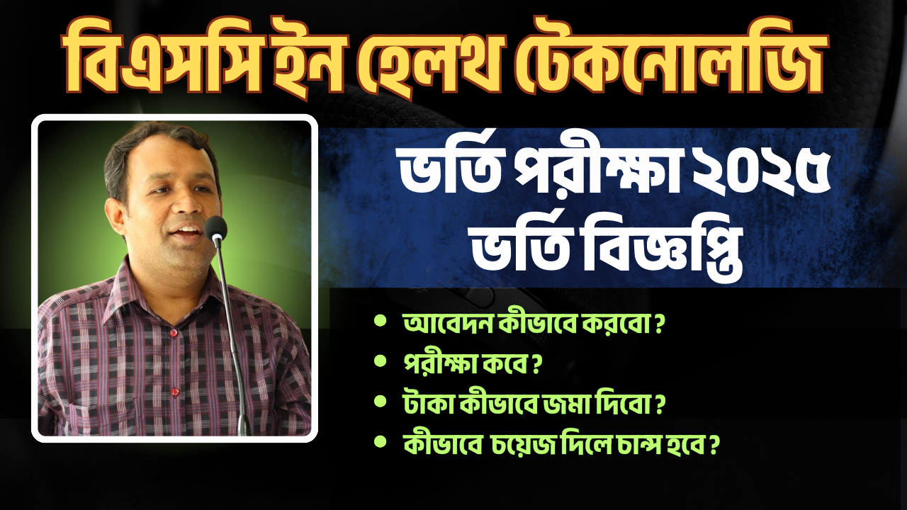 🔹২০২৫-২৬ ইং শিক্ষাবর্ষে ইন্সটিটিউট অব হেলথ টেকনোলখী ঢাকা, রাজশাহী ও জনস্বাস্থ্য ইনস্টিটিউটে বিএসসি ইন হেলথ টেকনোলজী কোর্স সমূহে ছাত্র-ছাত্রী ভর্তির বিজ্ঞপ্তি।