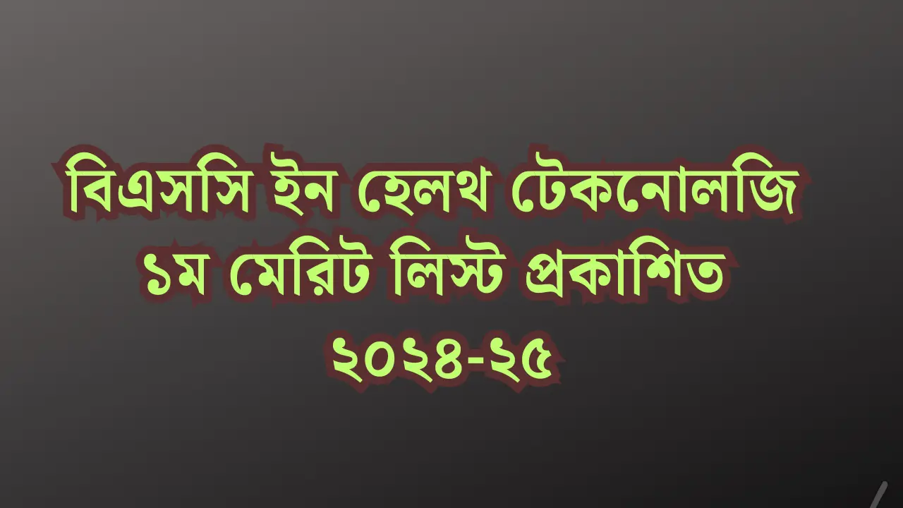 বিএসসি ইন হেলথ টেকনোলজি ভর্তি পরীক্ষা ২০২৫ এর ১ম মেরিট লিস্ট প্রকাশিত হয়েছে । ১ম ধাপে ভর্তি সম্পন্ন হলে সিট ফাকা থাক সাপেক্ষে ১ম ওয়েটিং লিস্ট থেকে শিক্ষার্থী ভর্তি নিবে । নাম্বার সহ রেজাল্ট স্বাস্থ্য অধিদপ্তরের ওয়েবসাইটে প্রকাশ করা হবে । যেকোন প্রয়োজনে 01737130753 (Whatsapp)